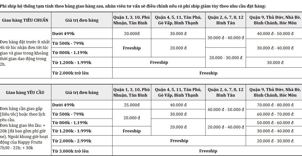 Đặt hàng Online nhanh chóng, tiện lợi, hỗ trợ thanh toán nhiều hình thức. Happy Fruits có xuất hóa đơn tài chính.